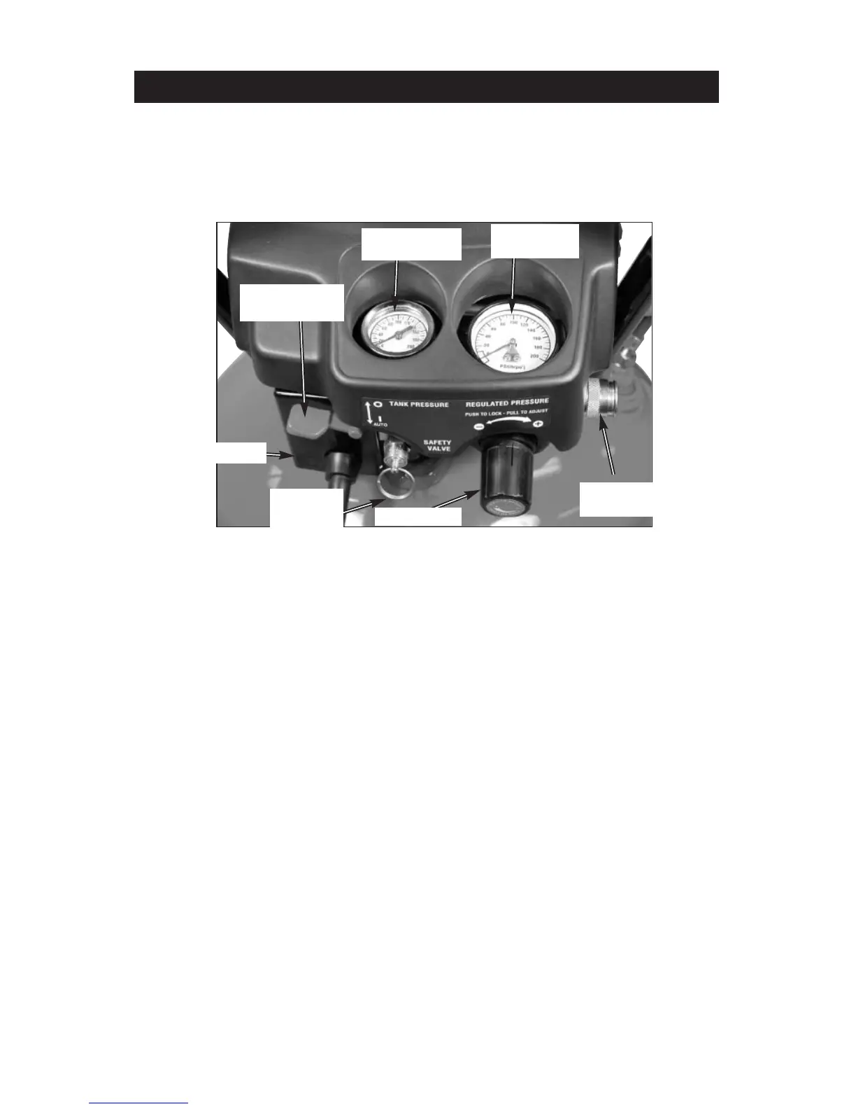 Régulateur : Le régulateur contrôle la pression d'air indiqué sur le manomètre de sortie.