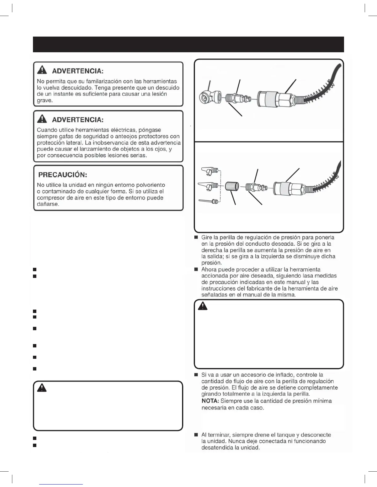 conectores, herramientas de aire y accesorios deben