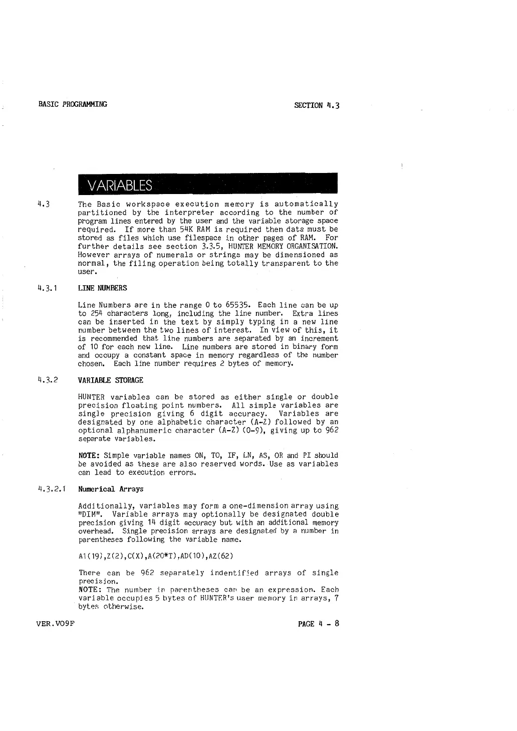 further details see section 3,3,5, HUNTER MEMORY ORGANISA.TION.