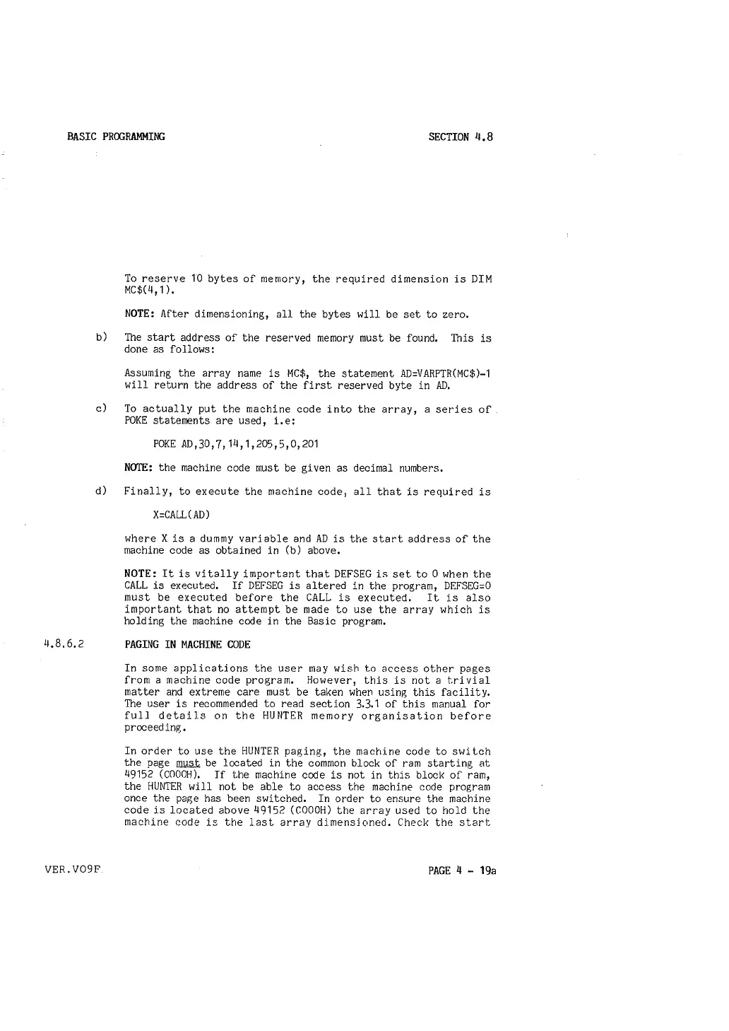 In order to use the HUNTER paging, the machine code to switch