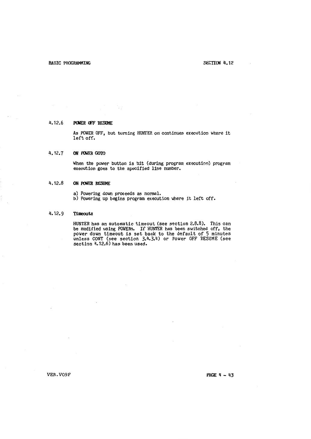 be modified using POWERn, If HUNTER has been switched off, the