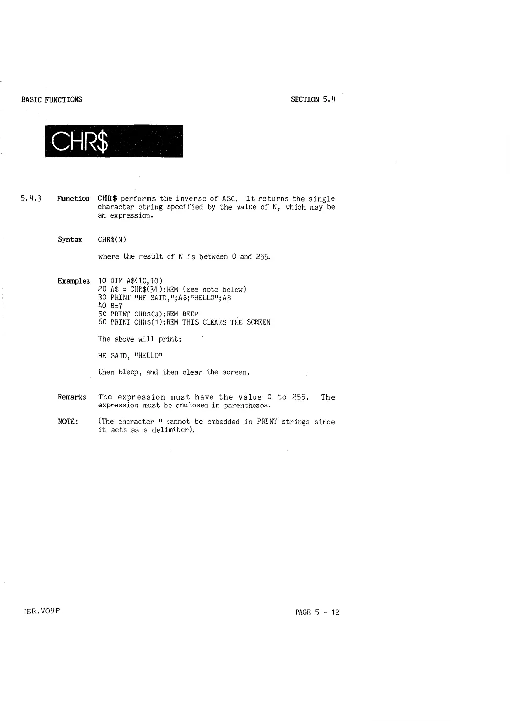 NOTE: (The character " cannot be embedded in PRINT strings since