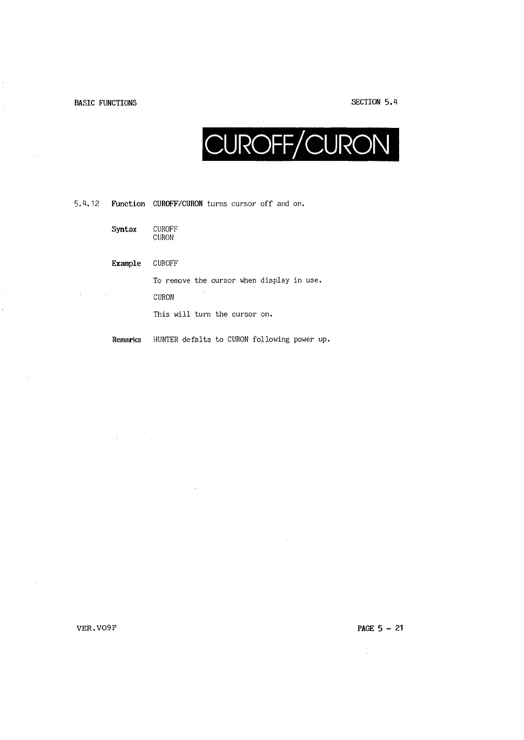 5.4. 12 Function CUROFF/CURON turns cursor off and on.