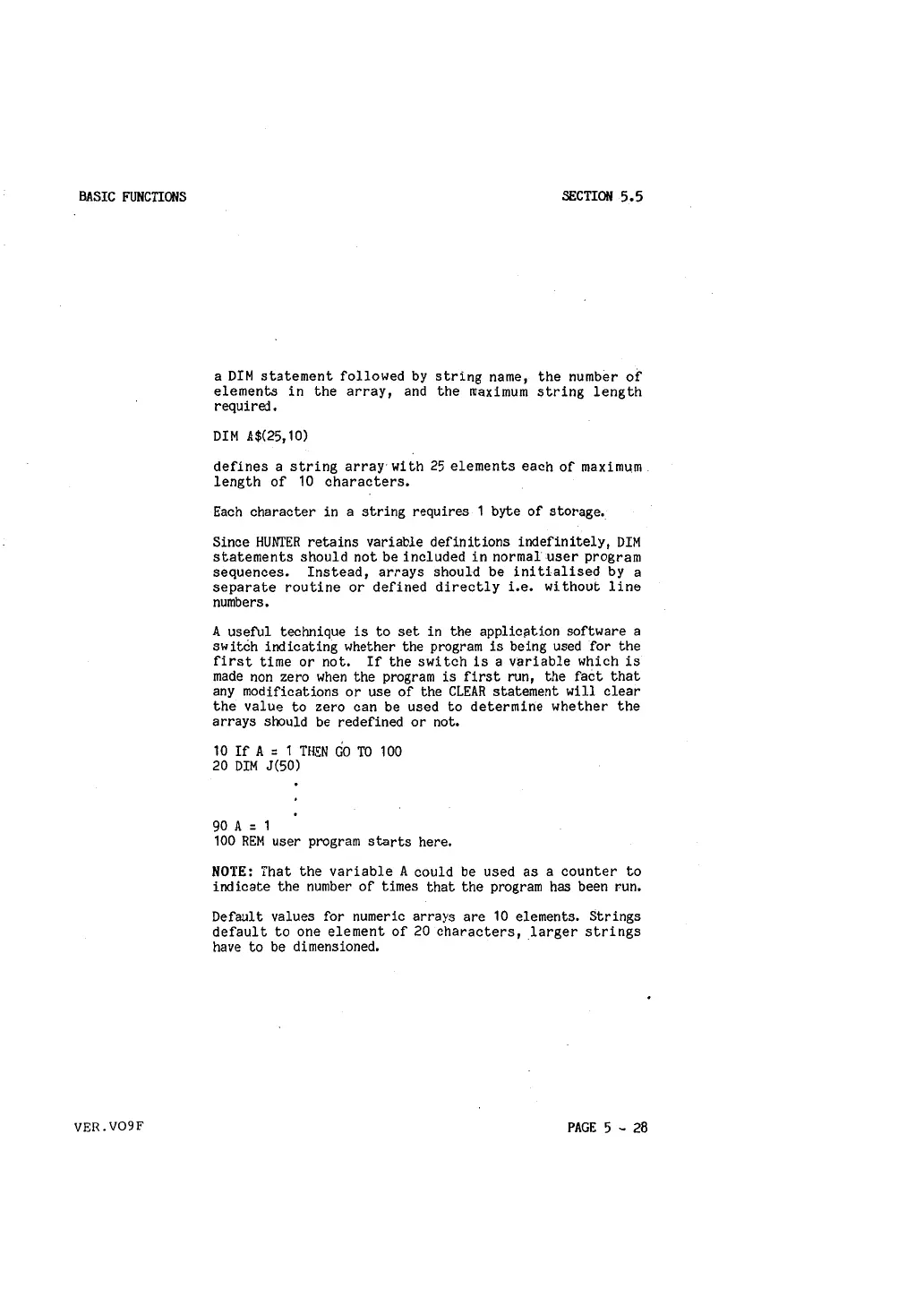Since HUNTER retains variable definitions indefinitely, DIM