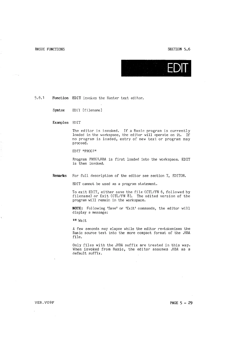 NOTE: Following 'Save' or 'Exit' commands, the editor wi.11
