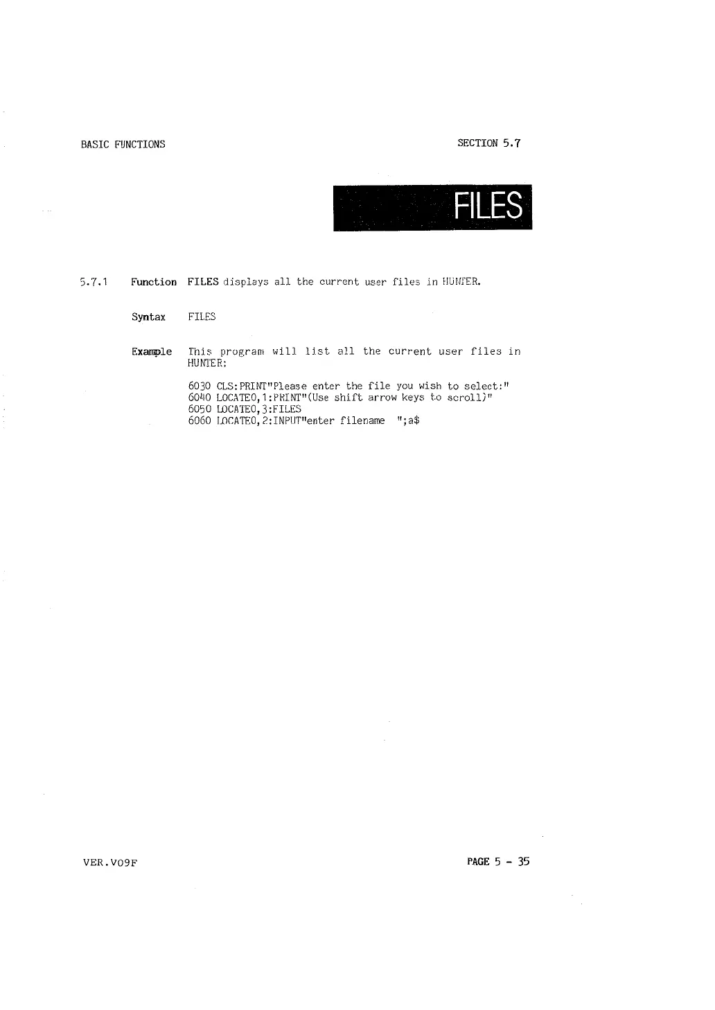 5. 7. 1 Function FILES displays all the current user files in fJUUI'ER.