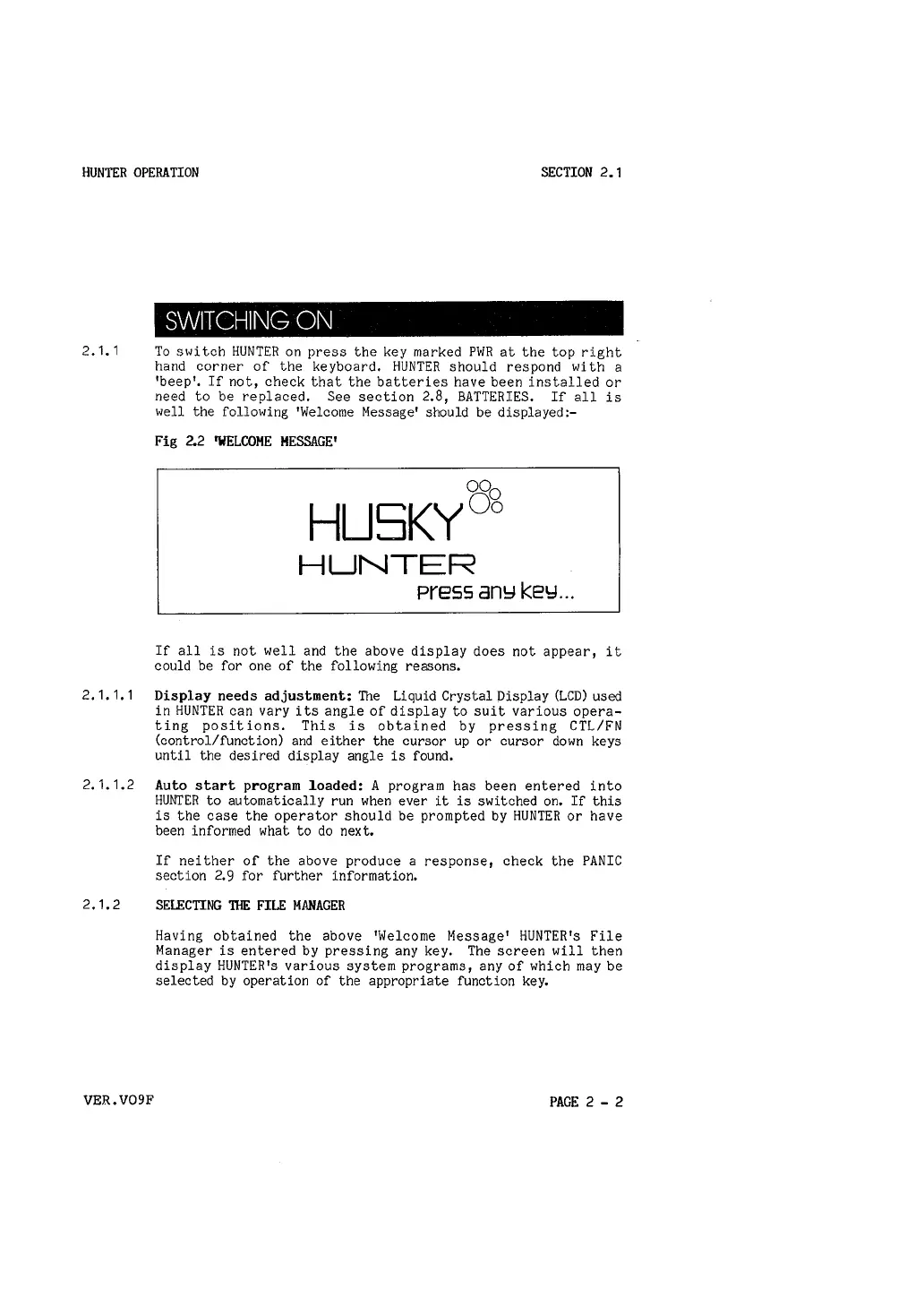 hand corner of the keyboard. HUNTER should respond with a