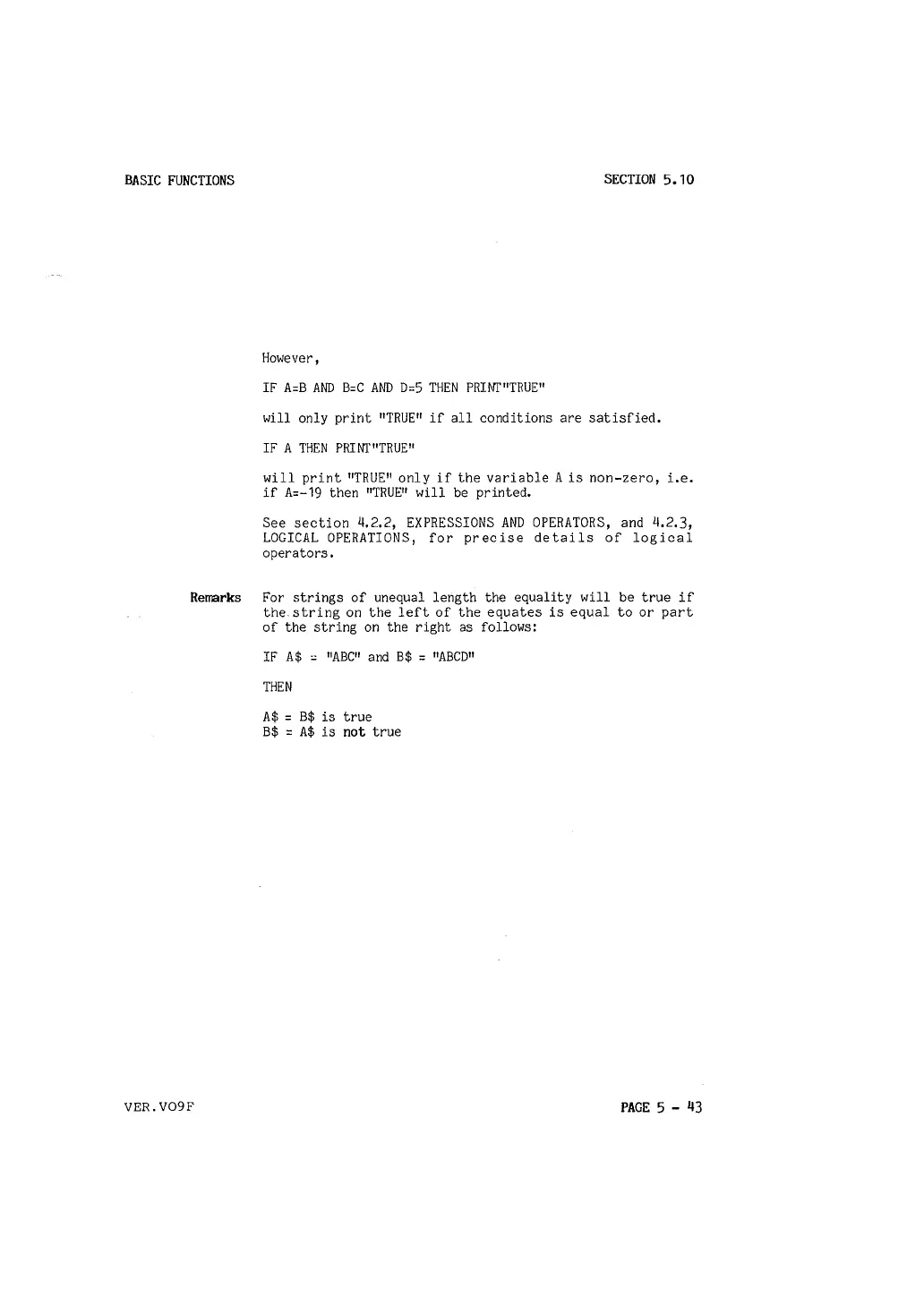 IF A=B AND B=C AND D=5 THEN PRINI'