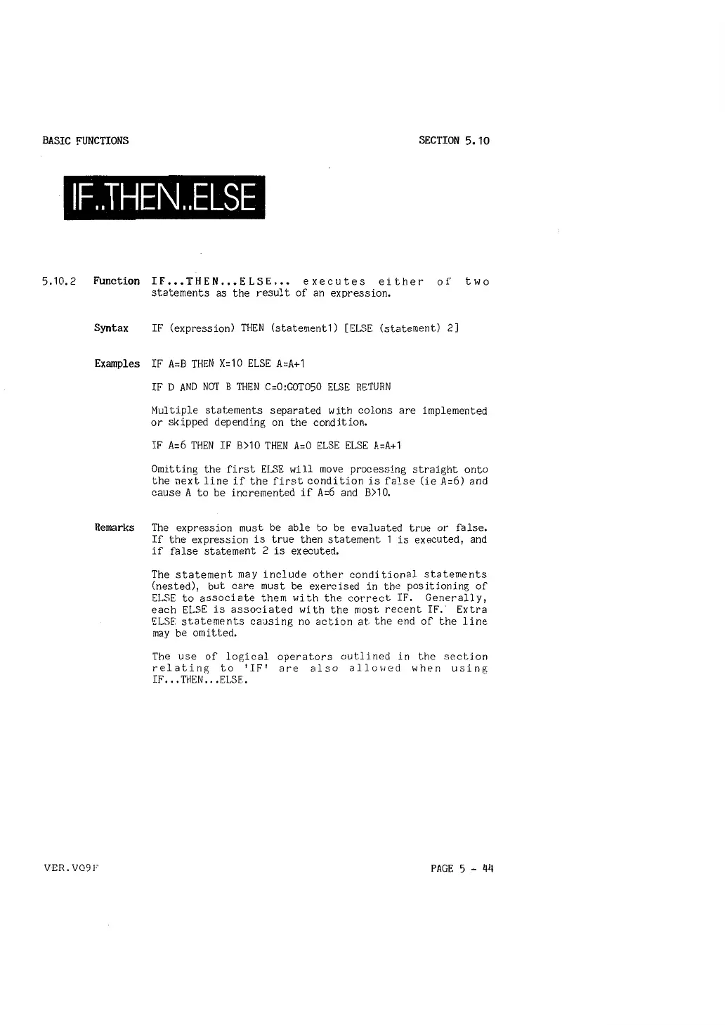 5.10.2 Function IF .•• THEN ..• ELSE, •• executes either of two