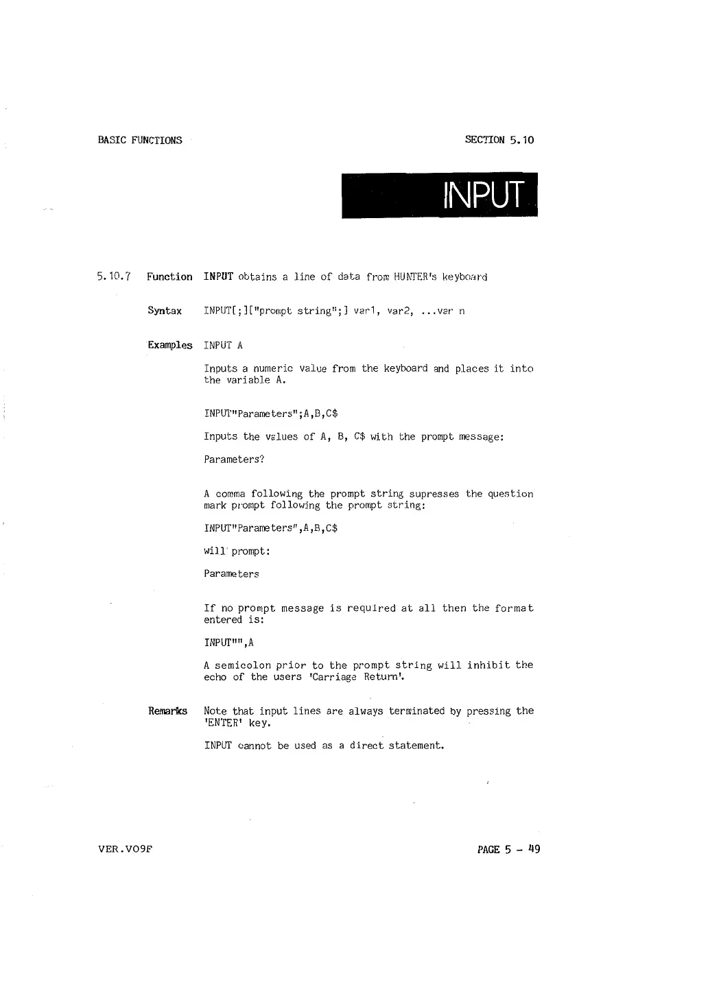 5. 10. 7 Function INPUT obtains a line of data from HUt'ITER 's keyboard