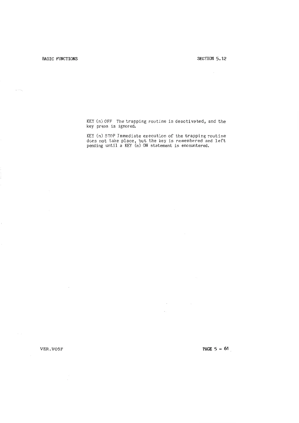 KEY (n) OFF The trapping routine is deactivated, and the