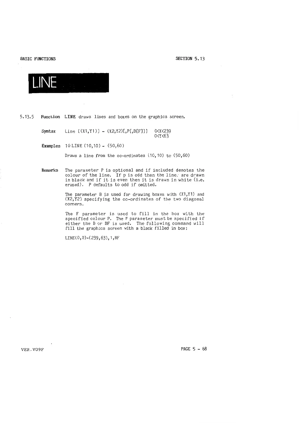 5. 13. 5 Function LINE draws lines and boxes on the graphics screen.