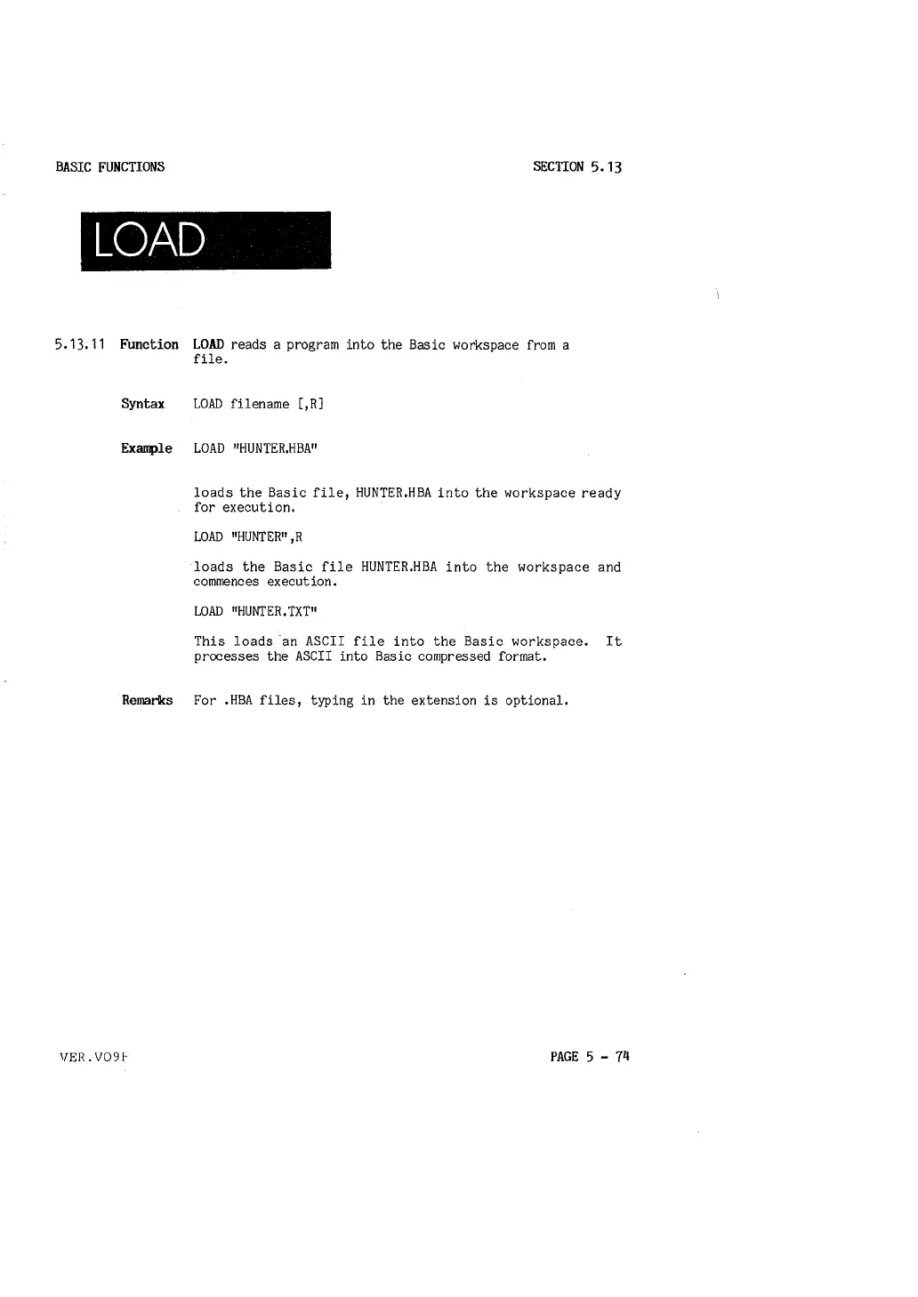 5.13.11 Function LOAD reads a program into the Basic workspace from a