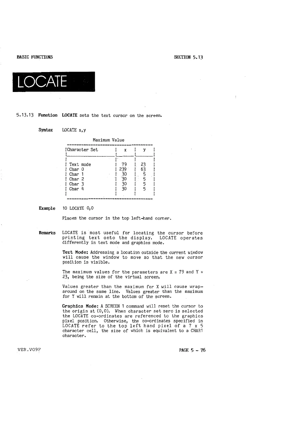 5,13,13 Function LOCATE sets the text cursor on the screen.