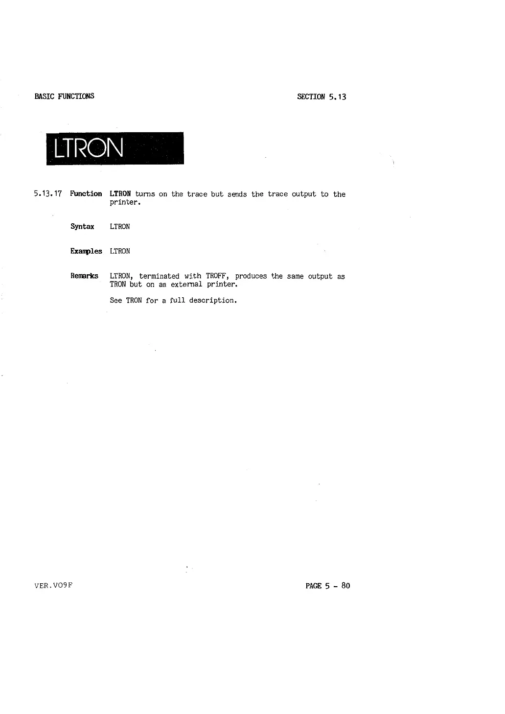 5.13.17 Function LTRON turns on the trace but sends the trace output to the