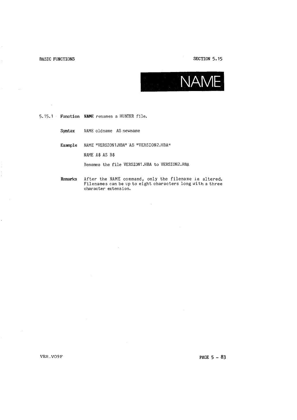 Renames the file VERSION1 .HBA to VERSION2.HBA