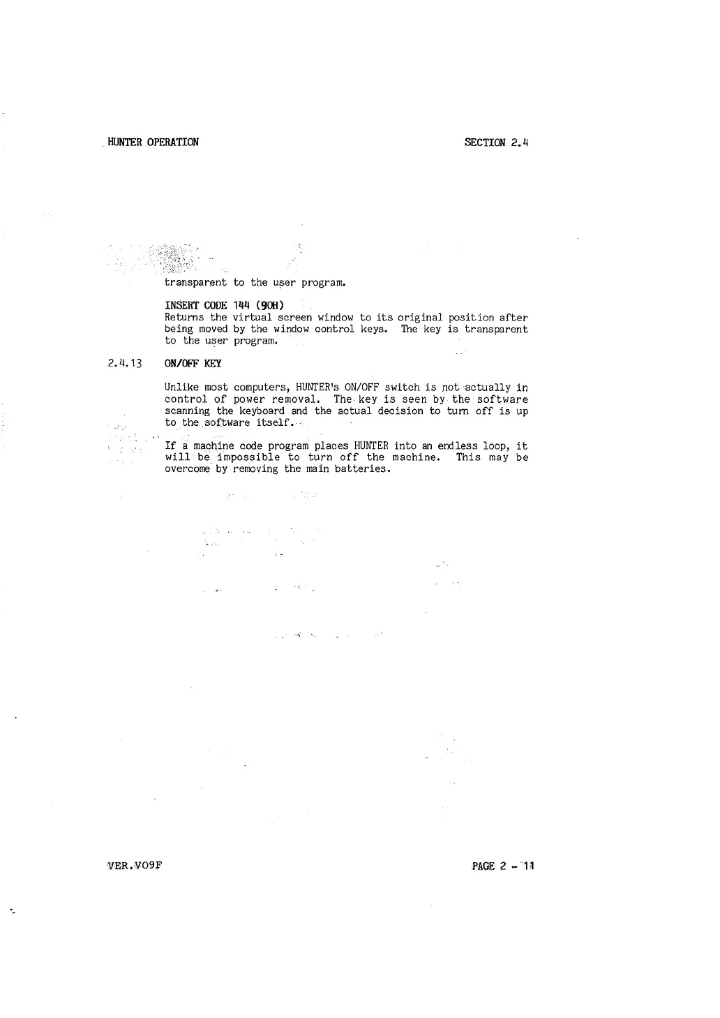 Unlike most computers, HUNTER's ON/OFF switch is not ·actually in