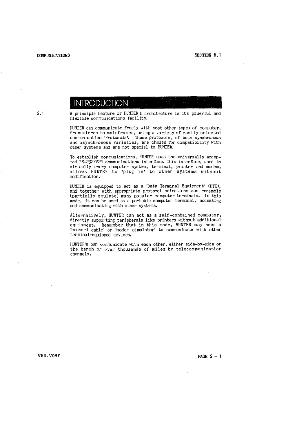 HUNTER is equipped to act as a 'Data Terminal Equipment' (DTE),