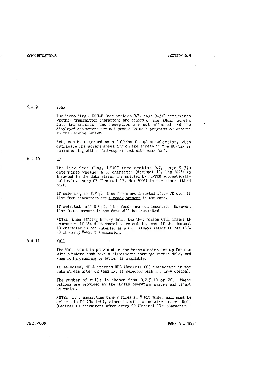 NOTE: If transmitting binary files in 8 bit mode, null must be