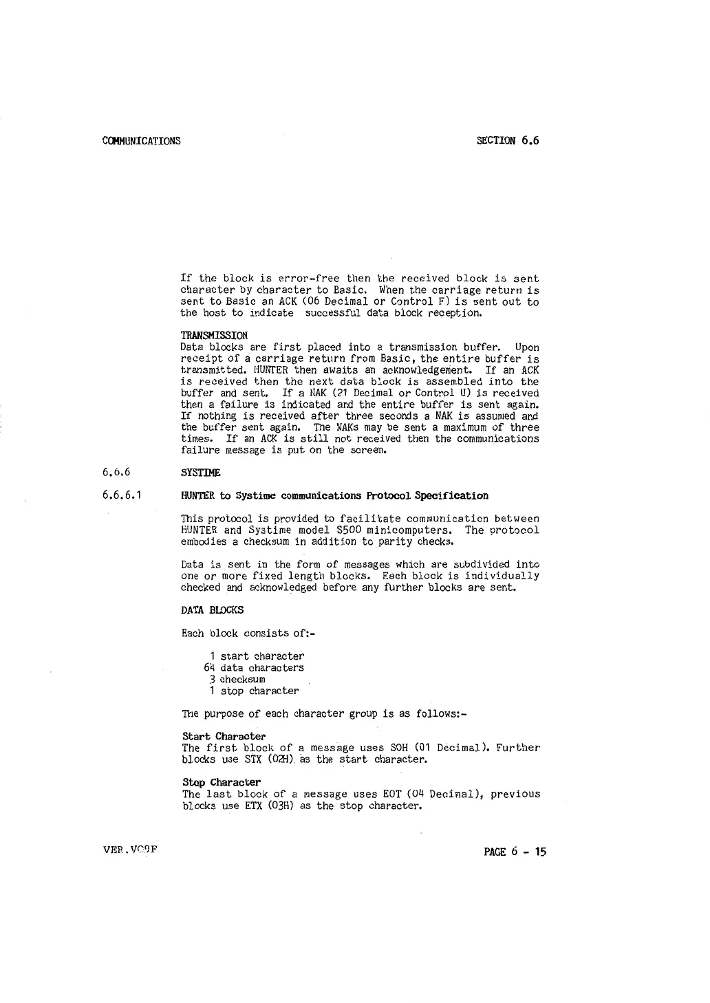 HUNTER and Systime model S500 minicomputers, The protocol