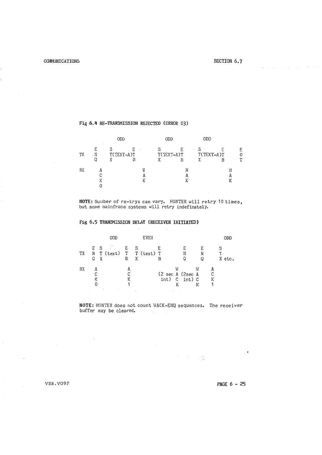 NOTE: HUNTER does not count WACK-ENQ sequences. The receiver