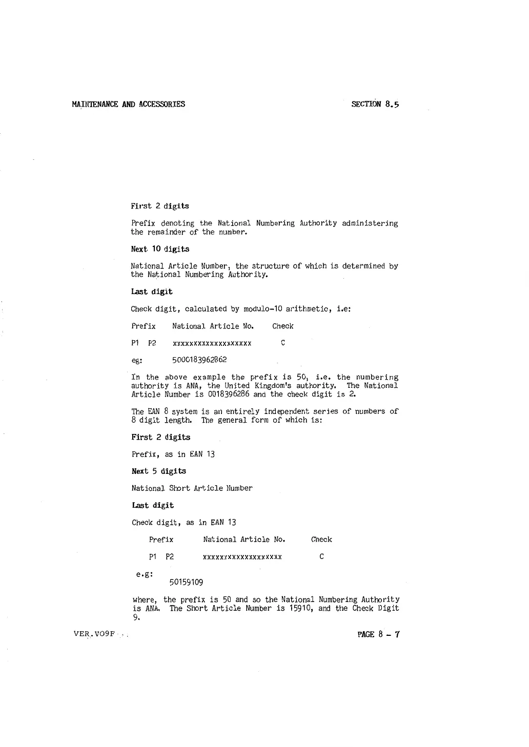 MAINTENANCE AND ACCESSORIES SECTION 8.5