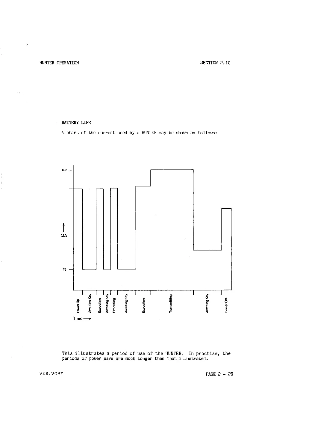 A chart of the current used by a HUNTER may be shown as follows: