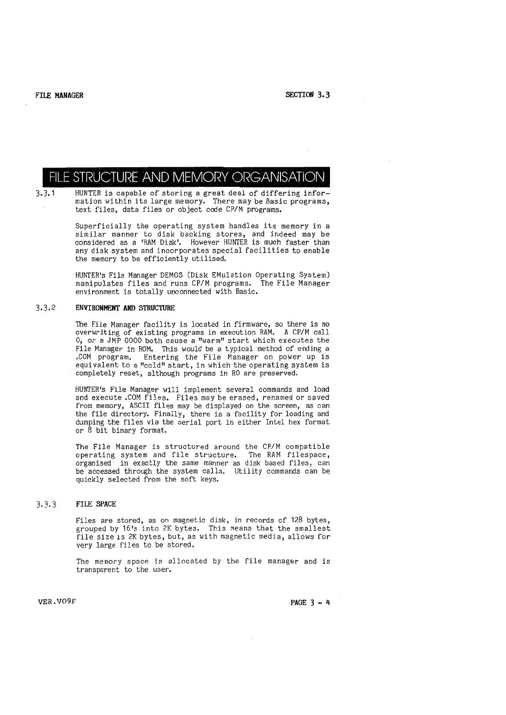 operating system and file structure. The RAM filespace,