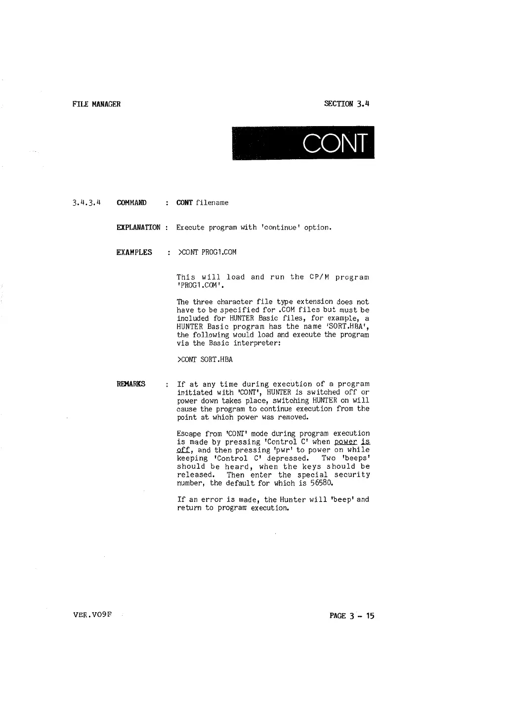 initiated with 'CONT', HUNTER is switched off or