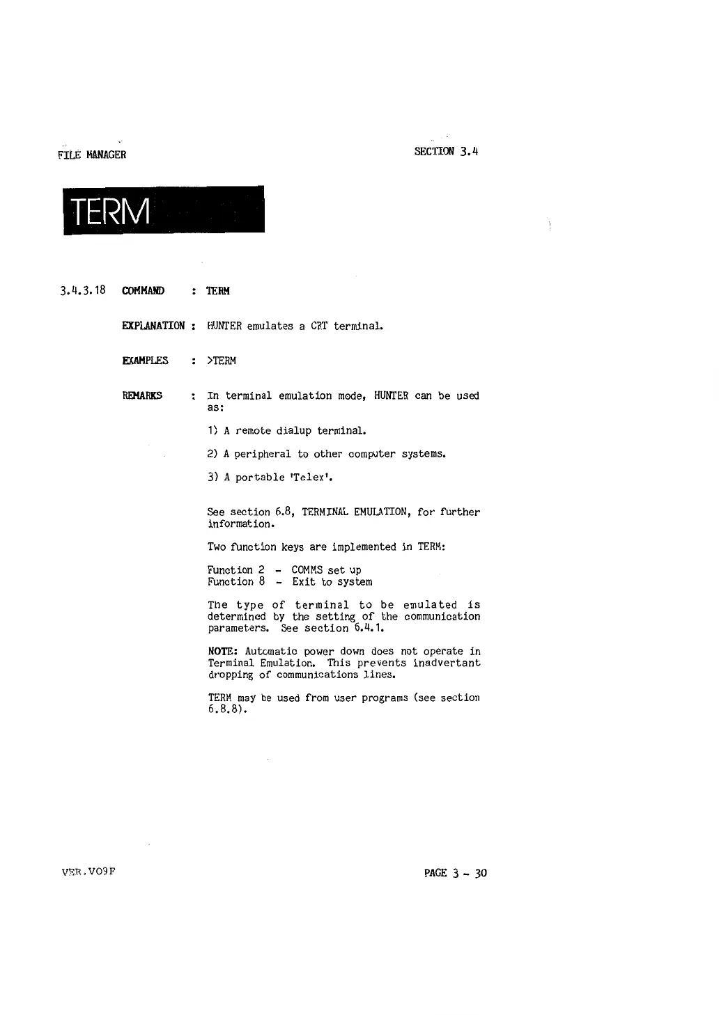 Two function keys are implemented in TERM: