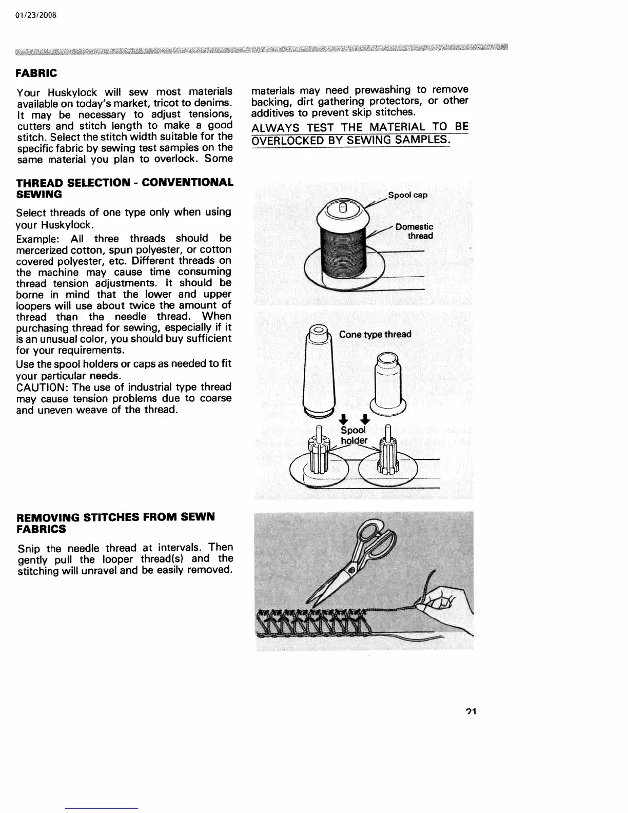 Huskylock 340D - Fabric and Thread Selection; Fabric Considerations; Thread Selection for Overlocking