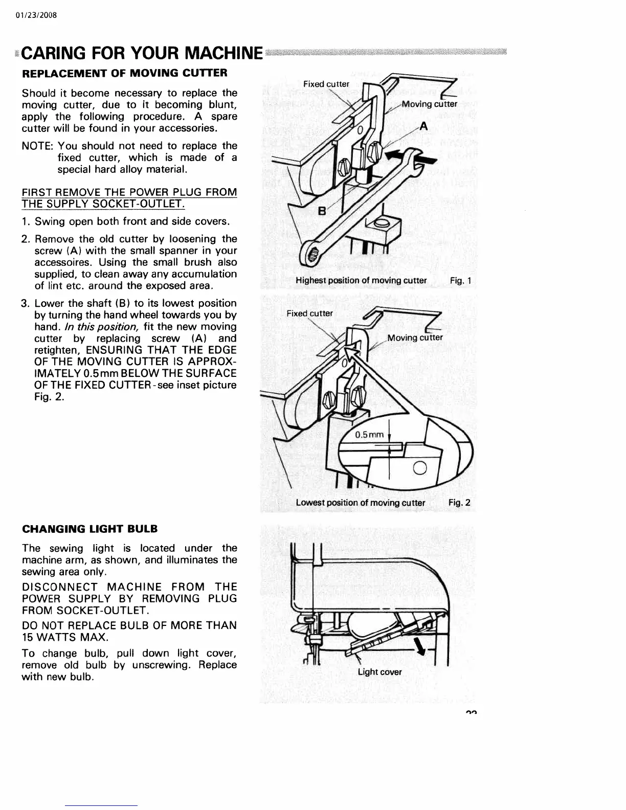 Huskylock 340D - Caring for Your Machine; Replacing the Moving Cutter