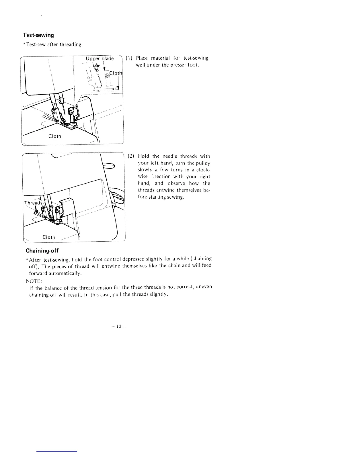 Huskylock 430 - Sewing Tests and Finishing; Test Sewing Procedure; Chaining Off Technique