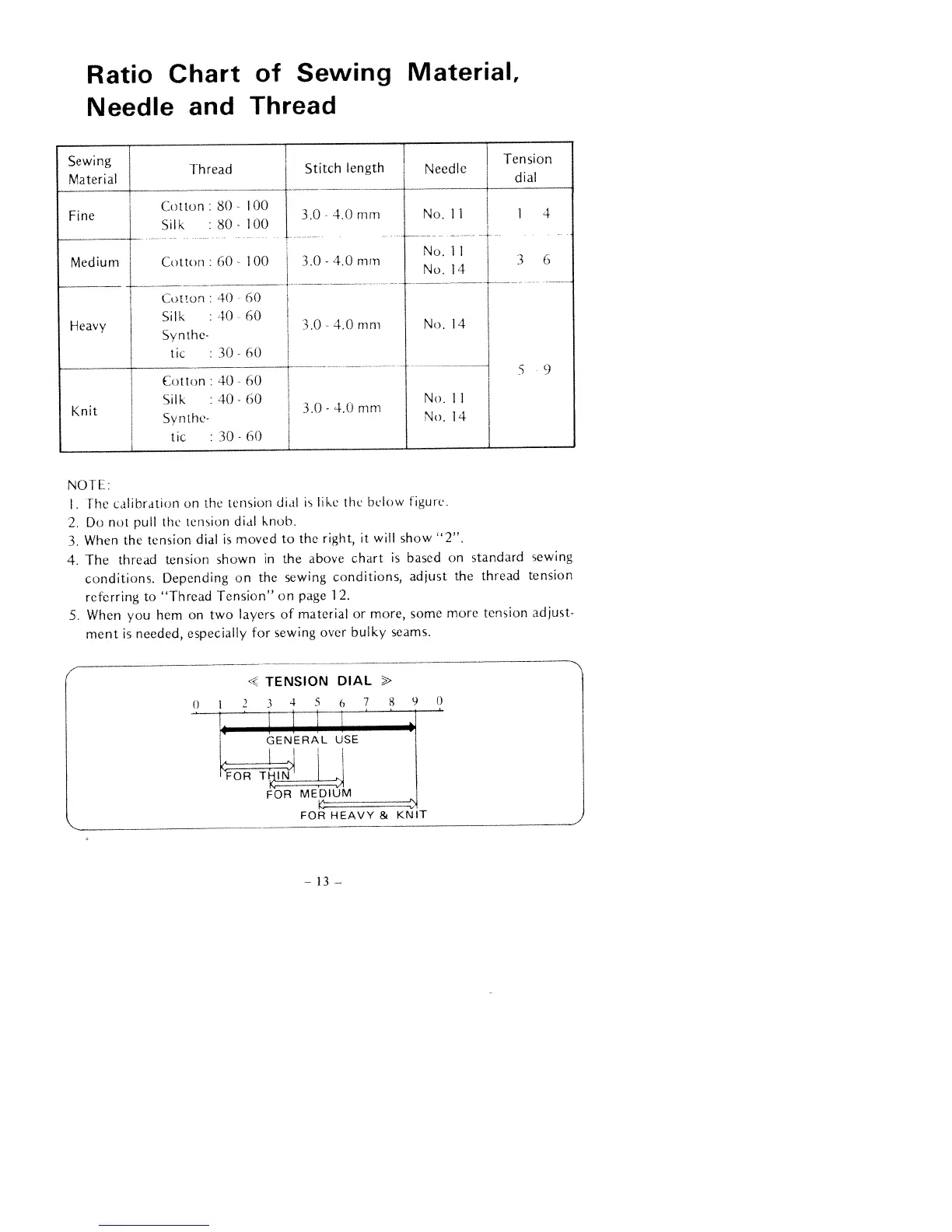 Huskylock 430 - Material and Tension Guide; Material;Needle;Thread Chart; Tension Dial Explanation
