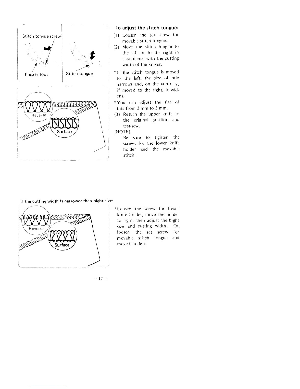 Huskylock 430 - Stitch Width & Tongue; Stitch Tongue Adjustment; Correcting Narrow Width