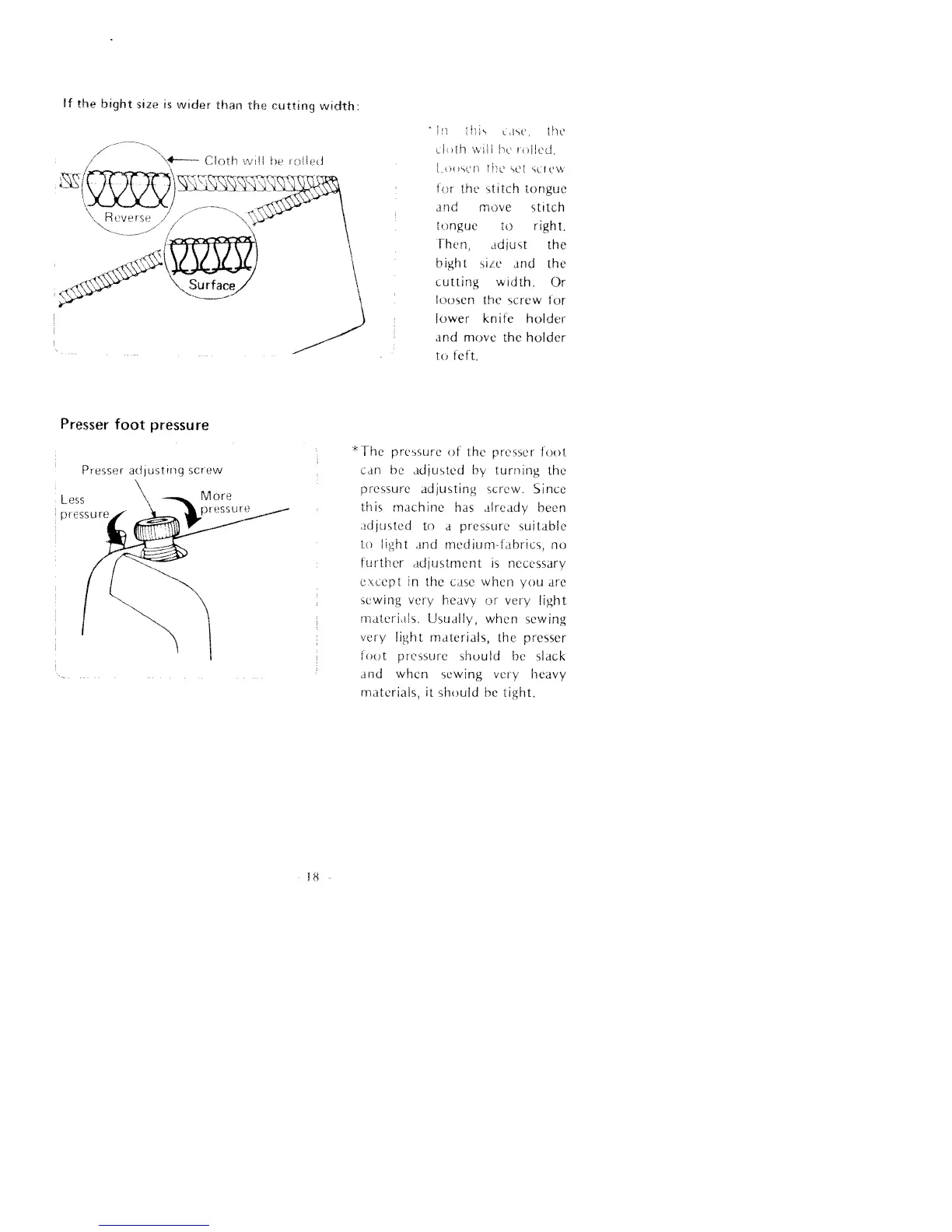 Huskylock 430 - Material Handling & Presser Foot; Presser Foot Pressure Adjustment; Sewing Thick Materials; Sewing Fine Materials