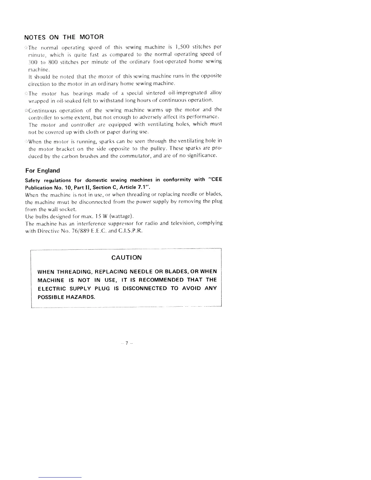 Huskylock 430 - Motor and Safety Notes; Motor Performance Details; Electrical Safety for UK