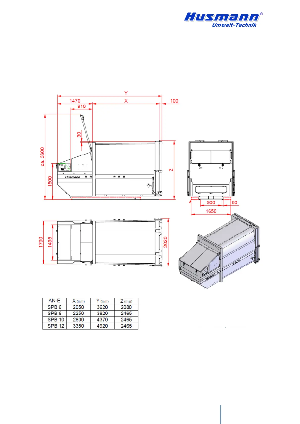Husmann SPB - Dimensioned Drawings of Portable Compactors