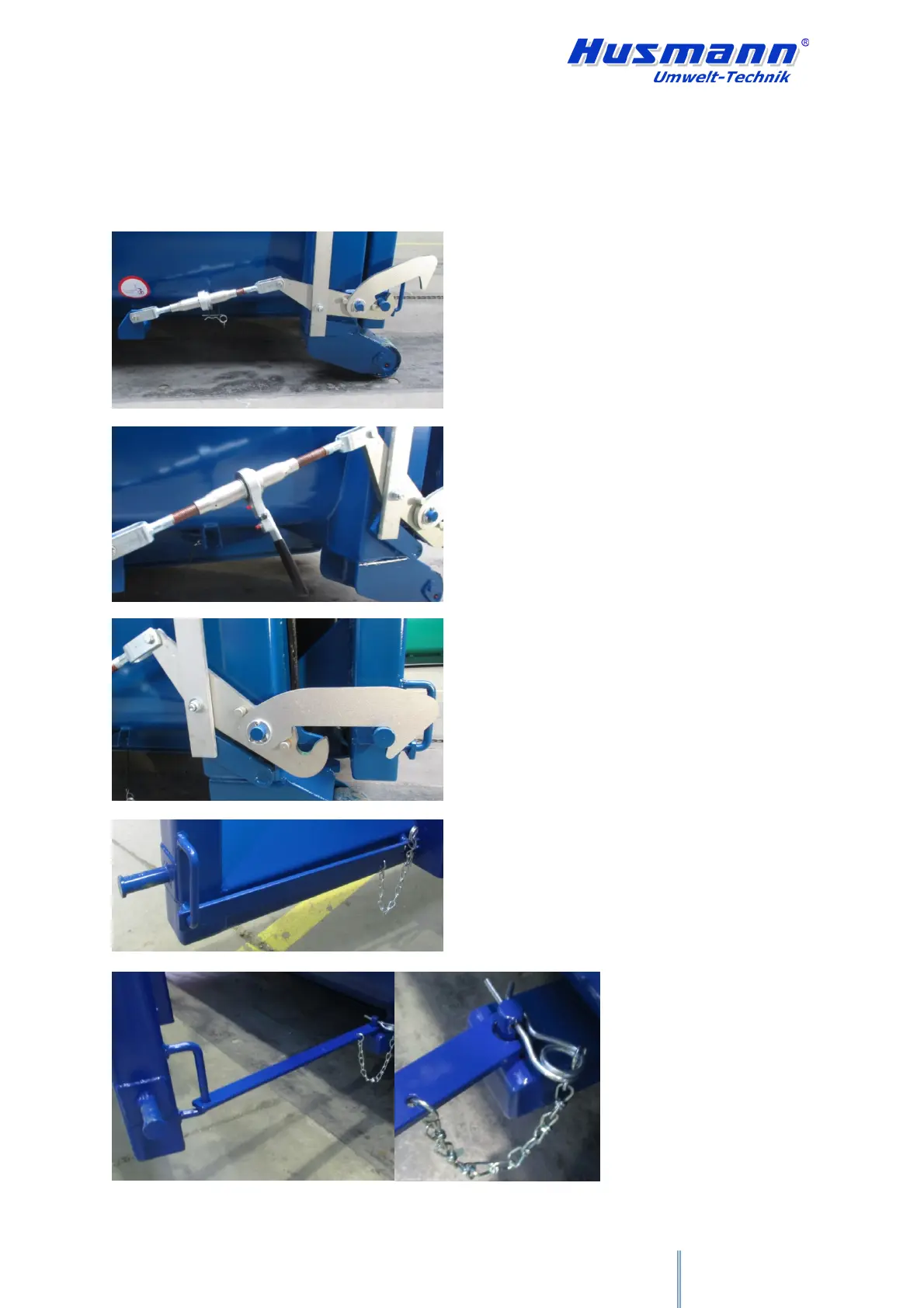 The following pictures show the container locking mechanism and the steps to open and se-