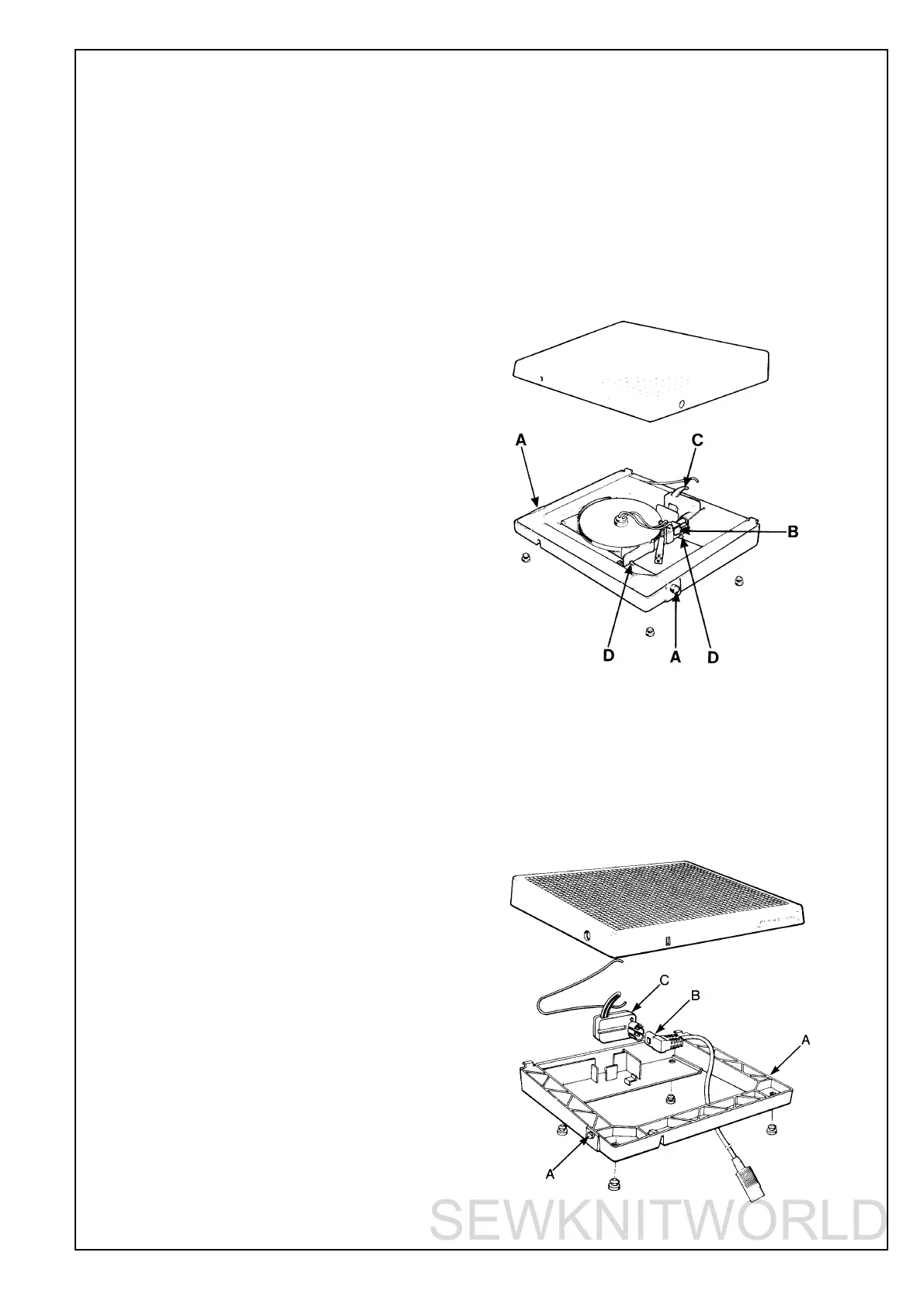 Push the plug (B) of the cord device out of the potentiometer (C).