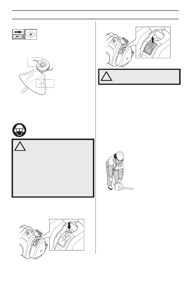 (OBS! Ej med foten!). Grip starthandtaget, drag med