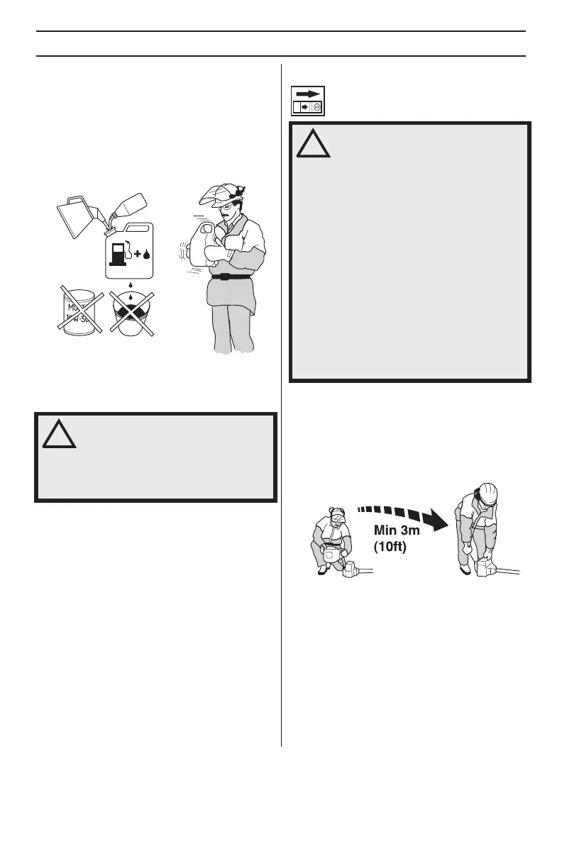 • Bensin og olje må alltid blandes i en ren beholder som