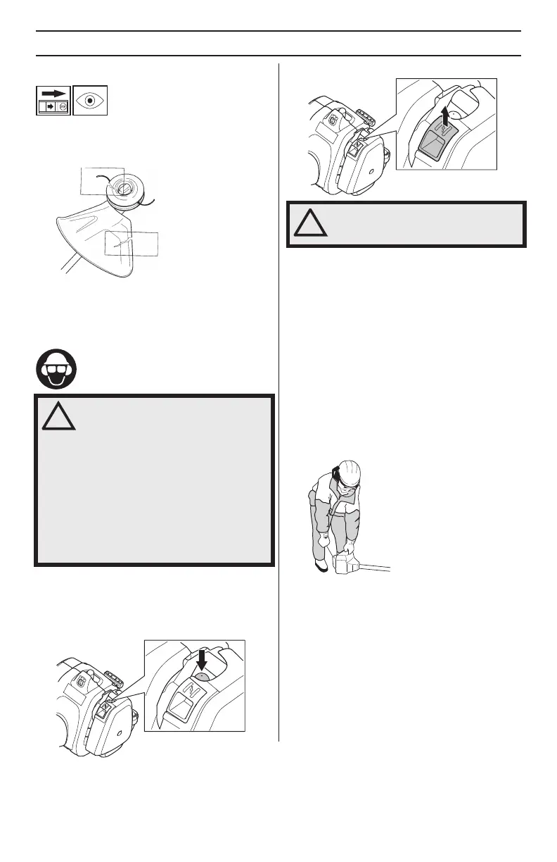 (OBS! Ikke med foten!). Ta tak i starthåndtaket med høyre