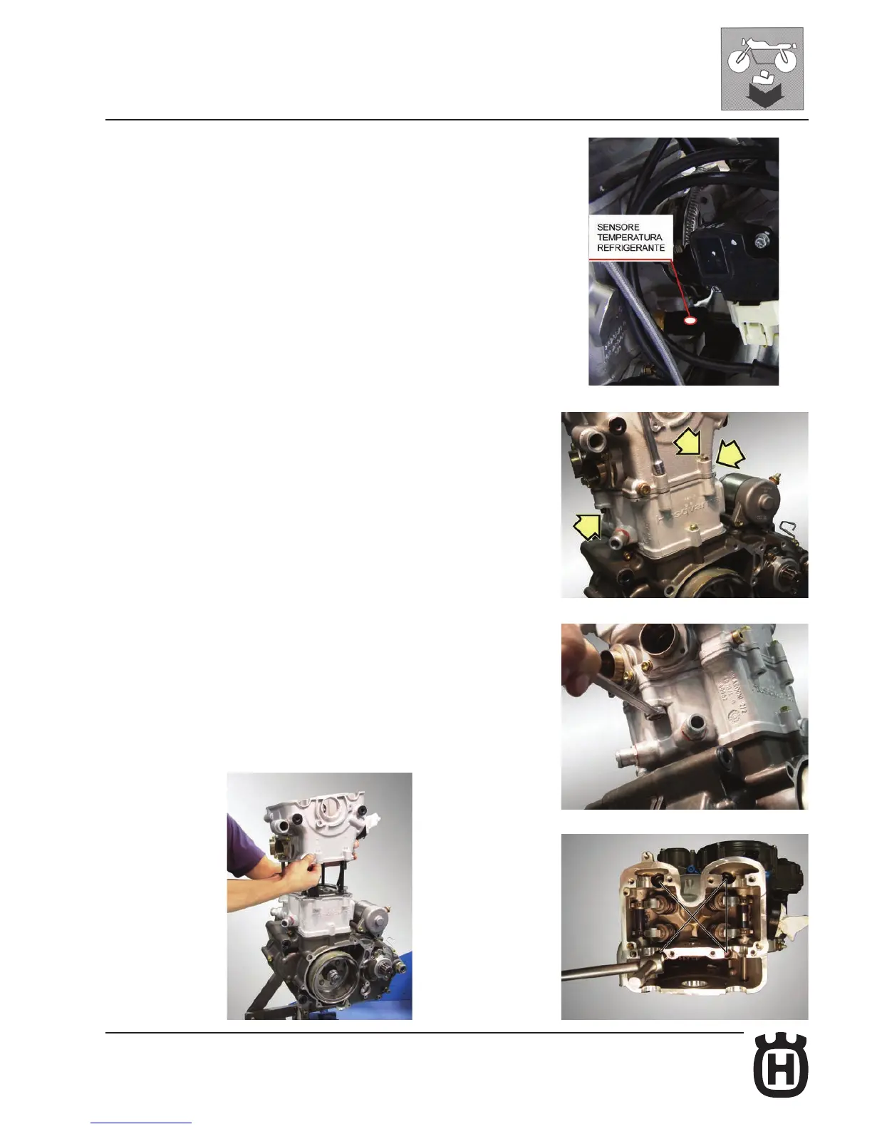 Remove the four inner screws on the cylinder head (10 mm wrench) whilst