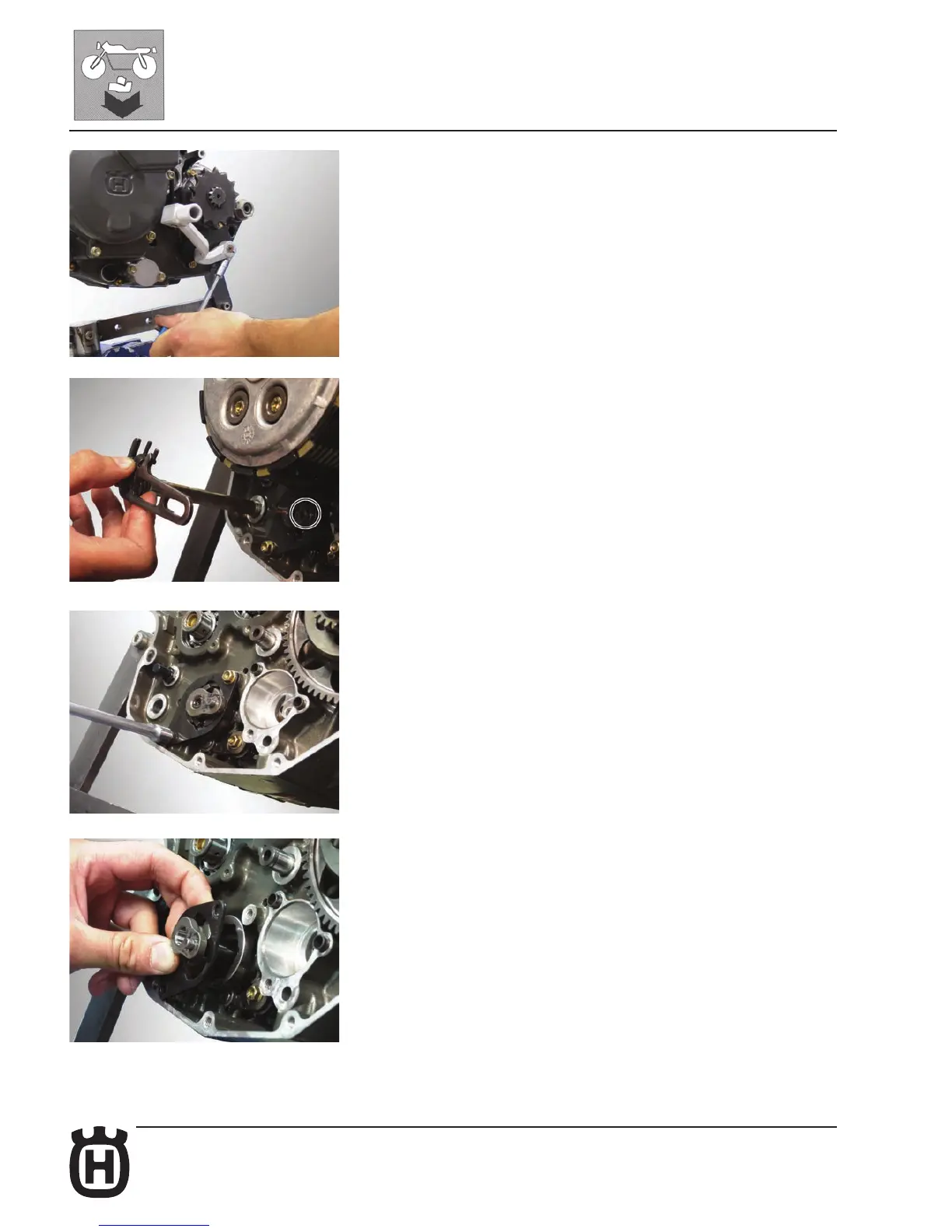 Remove the two fastening screws, the gear shifter retaining plate and the ratchet