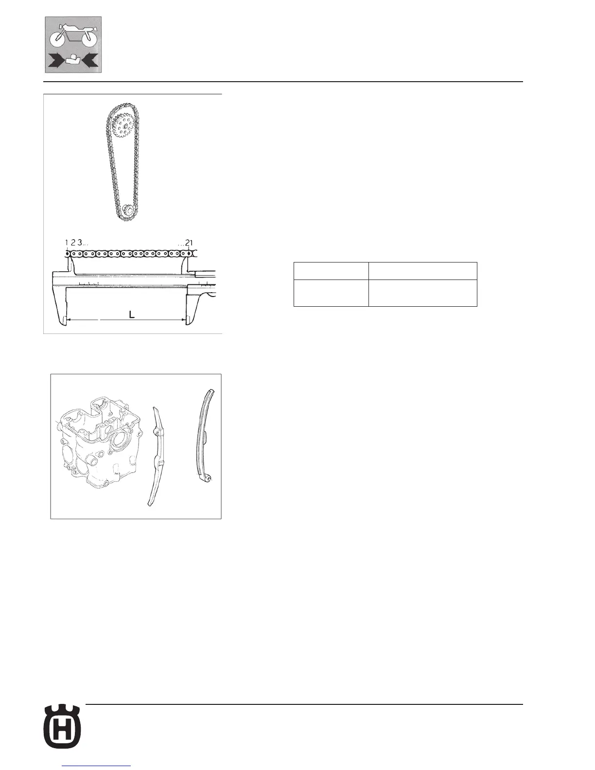 components. Hold the chain taut and check the length of 20 links (21 pins).