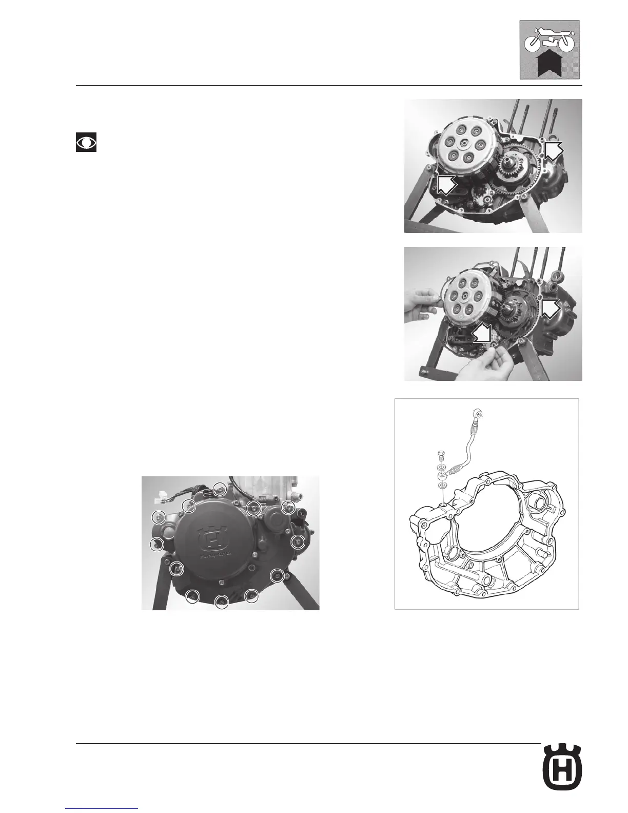 Mount the transmission cover and tighten the twelve screws (8 Nm-0,8 Kgm- 5.8 ft/