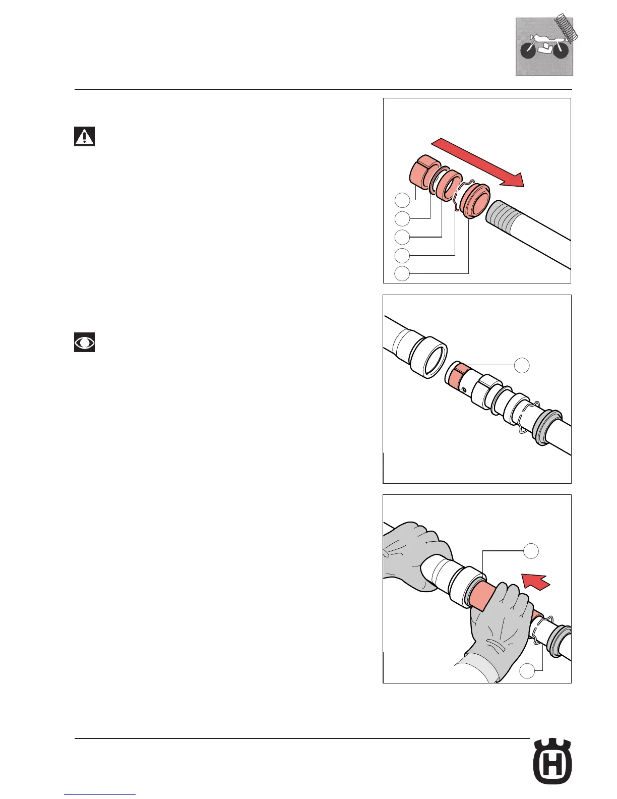 • Insert the following components in the stanchion tube in this order: dust seal ( 12),