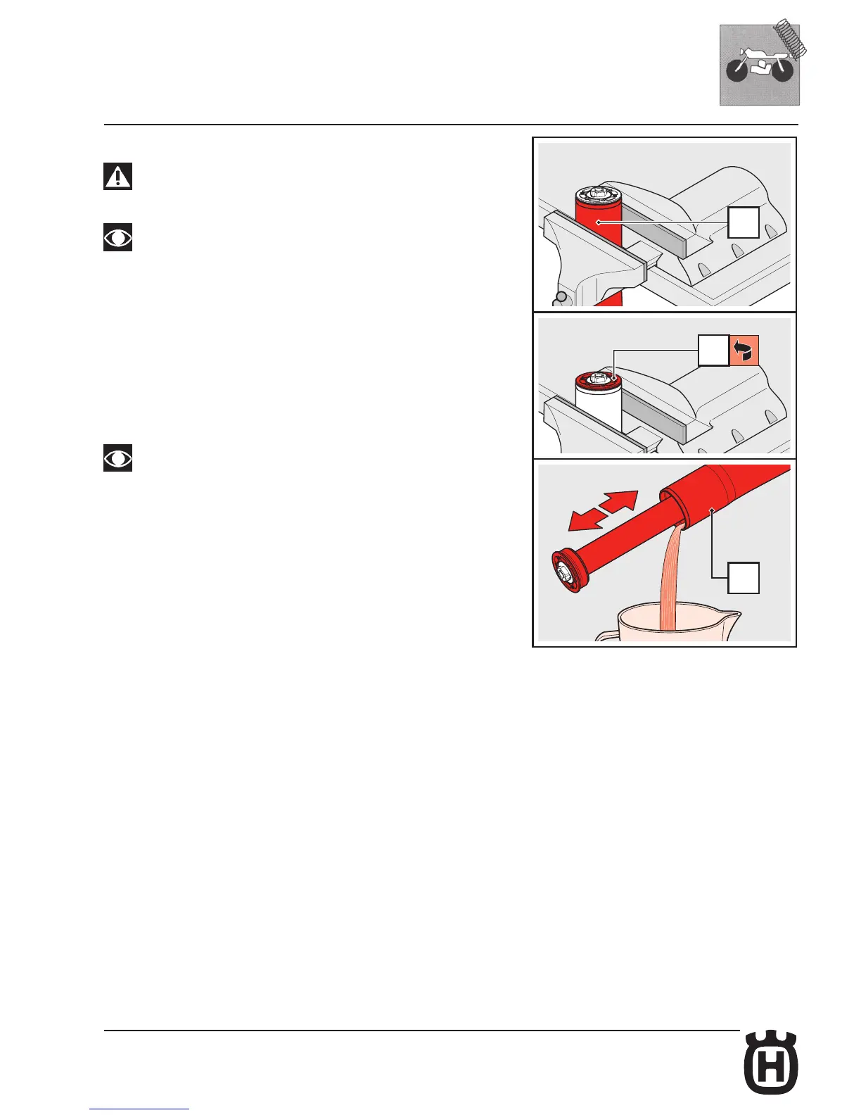 • Free the fork leg (11) from the vice and tip it into a container of a suitable size to