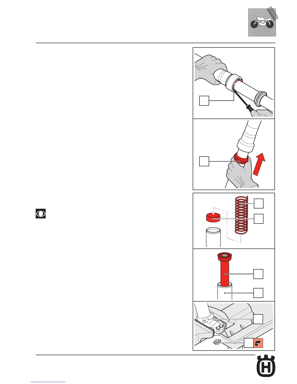 Insert the pre-load spacer (17) and the spring (19) inside the stanchion tube.